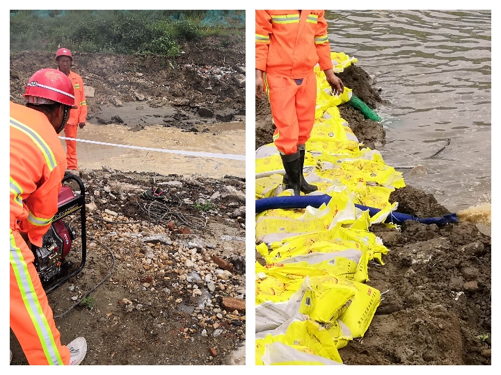 搶險救援組趕赴現場對圍堰缺口進行機械圍堵、沙袋防護、水泵抽水等搶險行動,模擬搶險過程中,有一工人不慎落水,醫療救援組對該落水工人進行了緊急救援,并送至醫院救治。各小組協同作戰,使防汛搶險任務順利完成,讓工程受災損失降到最低。